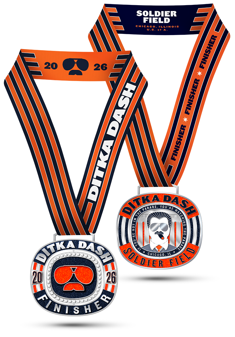 All Ditkas will receive an iconic mustache, aviator shades, a race shirt inspired by Coach’s fine wool sweater vest, and a championship finisher medal so epic it belongs in the Hall of Fame.
